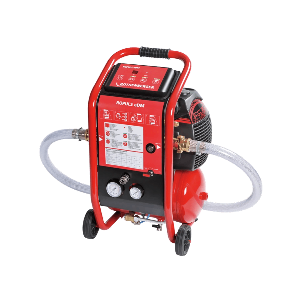 A ROPULS eDM mosókompresszor a szerelők és gondnoki szolgálatok számára optimális fűtőkörök tisztításához és iszaptalanításához, ívóvízvezetékek DIN 1988-2/EN 806-4 szerinti átmosásához, illetve ivóvízvezetékek fertőtlenítéséhez. Egy alkalmazás által létrehozott mosási protokoll azonnal elküldhető e-mailben PDF-fájlként vállalati fejléccel és minden szükséges adattal.