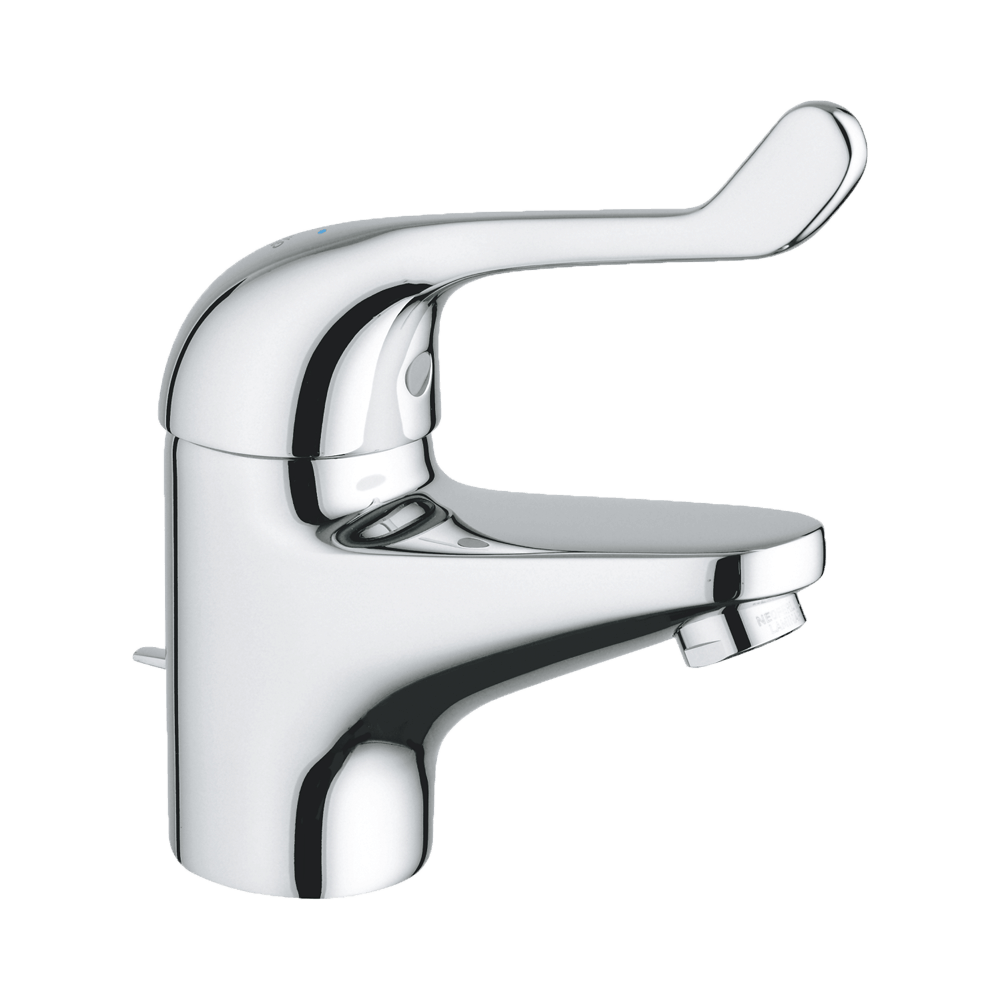 Grohe Euroeco Special orvosi csaptelepek beépített átfolyáskorlátozóval az akár 50%-os vízmegtakarításért, speciális orvosi karral a biztonságos kezelhetőségért. Egylyukas, sima tesű kivitel.