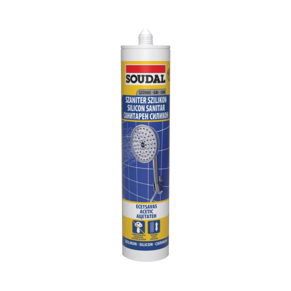 Gyors kötésű Soudal szaniter szilikon, kivételesen ellenálló formulával gomba, penész ellen, extra fényes fehér színben. Expressz: vízálló már 2 óra kötés után.