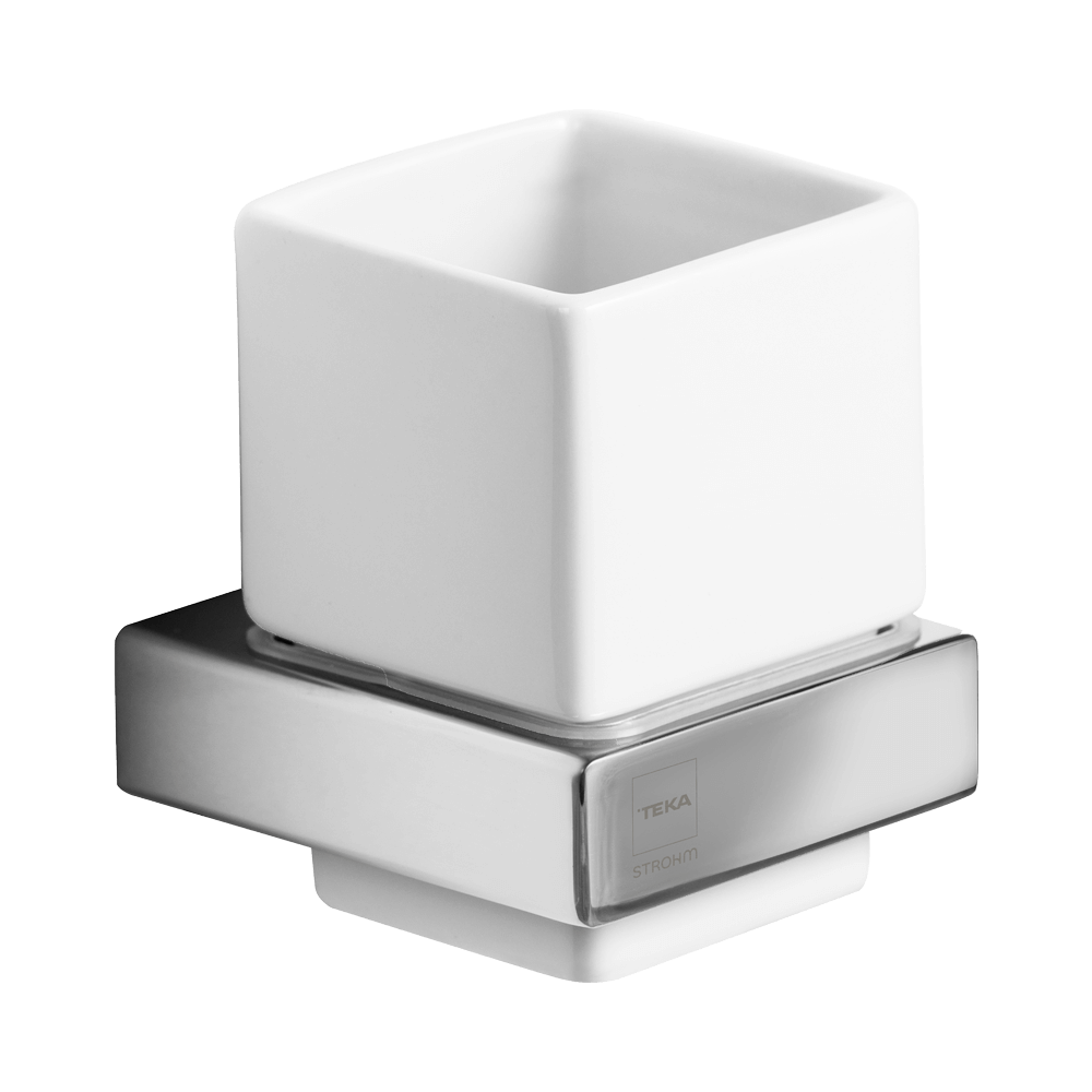 STROHM TEKA Formentera pohártartó, fehér kerámia pohárral, króm
