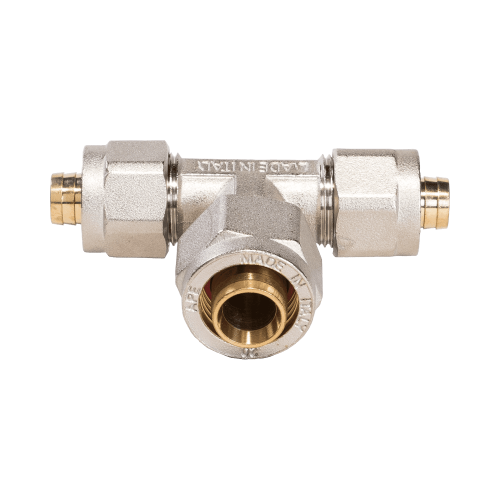 APE Alu szűkített kulcsos T-idom, ötrétegű és műanyag csövek egyszerű, gyors szereléséhez. Kisebb átalakításokhoz a legjobb és leggyorsabb megoldás, de akár komplett ívóvíz, vagy fűtési rendszerek szereléséhez is kiválóan alkalmas.