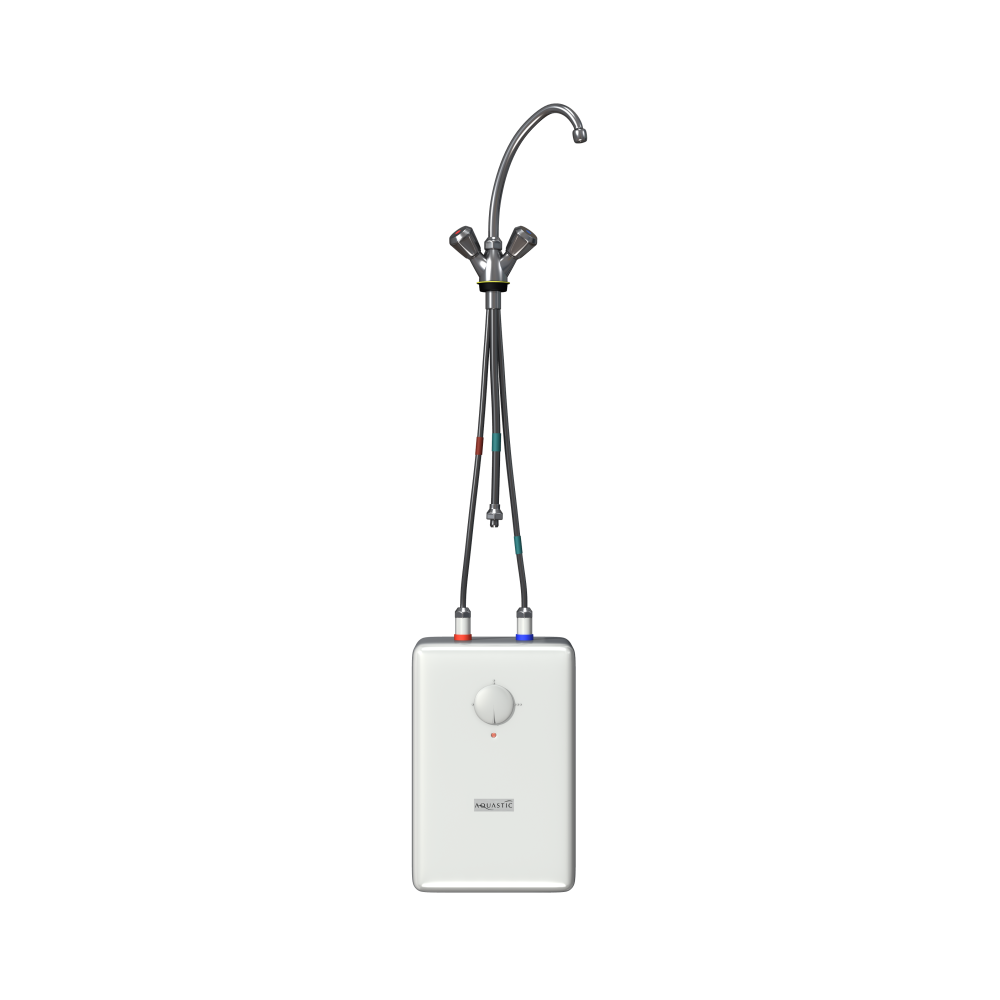 Az Aquastic 5F típusú elektromos vízmelegítők esztétikus, lekerekített formával és fényes fehér, nagy szilárdságú műanyag burkolattal készülnek, így bármilyen fürdőszobai vagy konyhai környezetbe könnyedén illeszkednek.