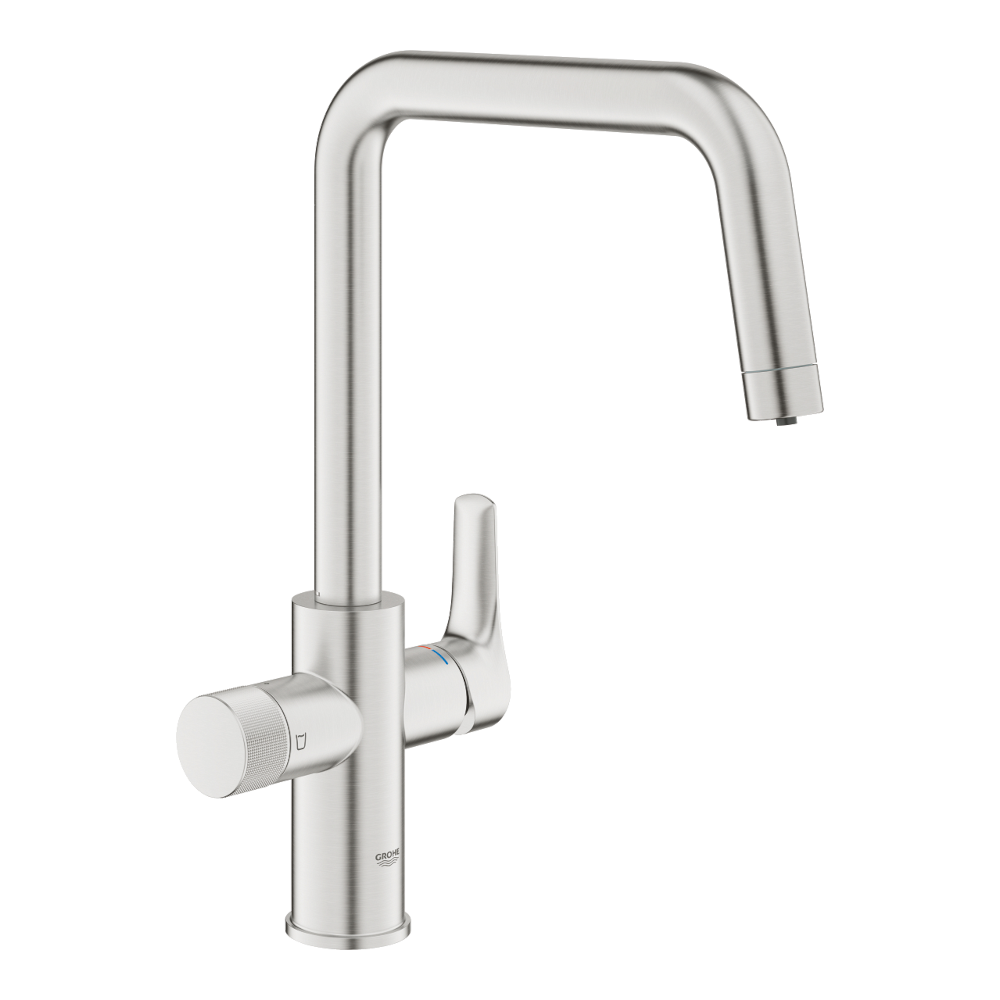 A SuperSteel felület modern, időtálló megjelenést biztosít, míg a GROHE SilkMove kerámiabetét precíz és hosszú távon is megbízható működést garantál. A rendszer tetszőlegesen választható GROHE Blue szűrőkészlettel egészíthető ki.