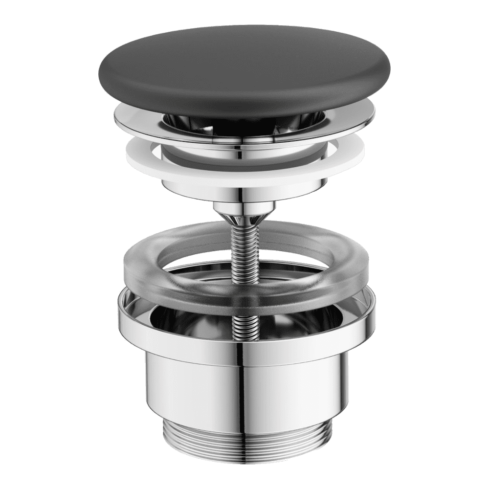 Flat állandó mosdó lefolyó kerámia dugóval matt fekete kivitelben. Alkalmas túlfolyó nélküli mosdókhoz.