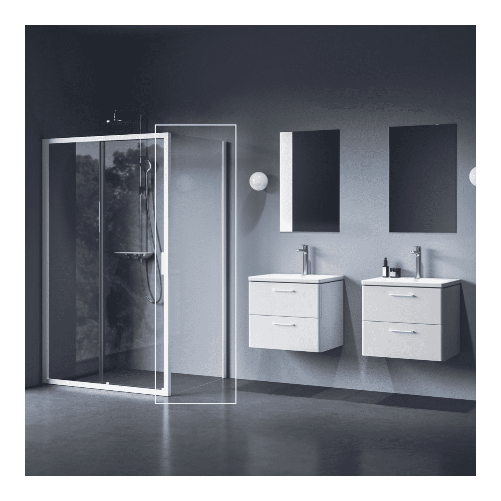 A Blix II NBLPS egyrészes fix oldalfal ideális kiegészítő Blix II zuhanyajtókhoz, ha letisztult, modern zuhanyteret szeretnél kialakítani. A matt fehér profil elegáns, világos megjelenést ad, míg a 6 mm vastag edzett, átlátszó biztonsági üveg stabil és időtálló megoldást biztosít.