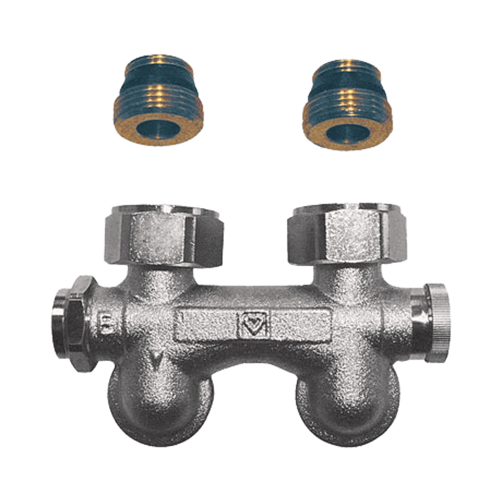 Fűtőtest-csatlakozás Rp 1/2-os, hollandival. 2 db csatlakozó-közcsavar 1 3002 12 mellékelve. Csőcsatlakozás G 3/4-os külső menettel, eurokónuszos kialakítással.