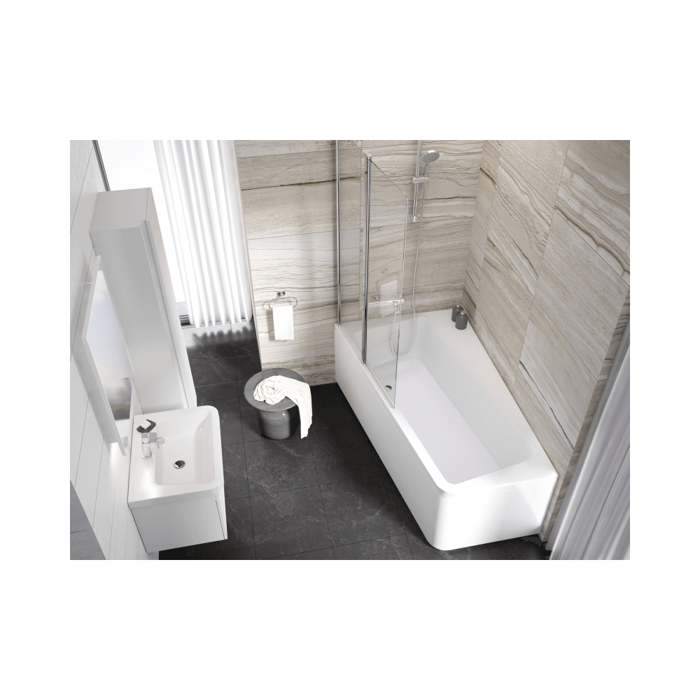 Amennyiben fürdőszobájába nem fér el zuhanykabin és kád is, válasszon aszimmetrikus kádat. Így előnyösen nagy fürdőteret kap ahhoz képest, mennyi helyet foglal a kád.