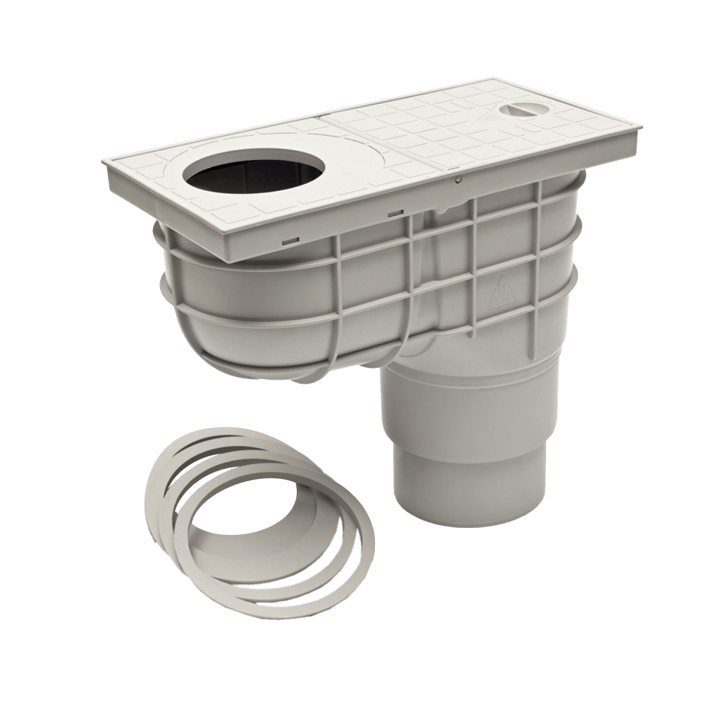 Az univerzális alsó kifolyású kültéri ereszcsatorna bekötő idom lombfogó kosárral egyfajta átmenetet képez otthonunk esővíz csatornája és a földben elvezetett pvc-csatorna / dréncső között. A tökéletes vízelvezetés záloga.