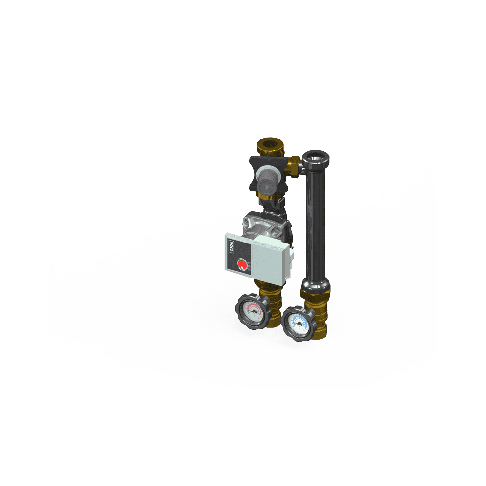 Padlófűtési rendszerekhez előszerelt egység. Háromutas keverőszeleppel szerelve, amelyet egy elektromos szelepmozgató motor vezérel. Bármilyen típusú vezérlőhöz csatlakoztatható az állítómotor.