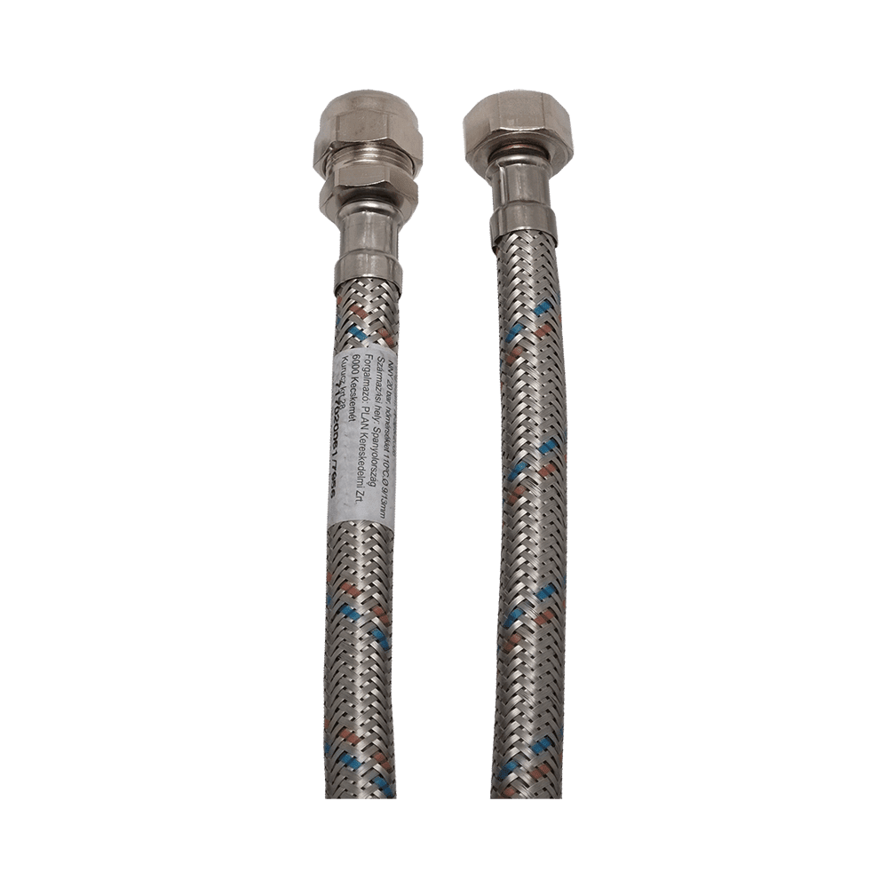 Csaptelepek bekötő szárának meghosszabbítására használható roppantógyűrűs flexibilis cső. 8 és 10 mm-es csőhöz típustól függően. A roppantógyűrűt leszedve 3/8" külső menettel csatlakozhatunk egyéb flexi csőhöz, vagy idomhoz.