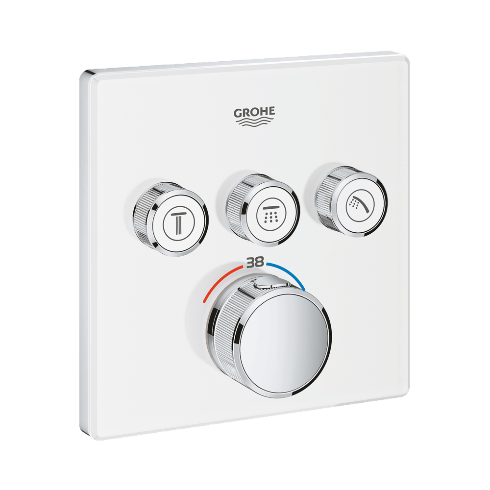 GROHE Grotherm SmartControl látható rész, falsík mögötti telepítéshez, 3 fogyasztóra, hőfok szabályozóval, szögletes, hold fehér, SmartBoxhoz