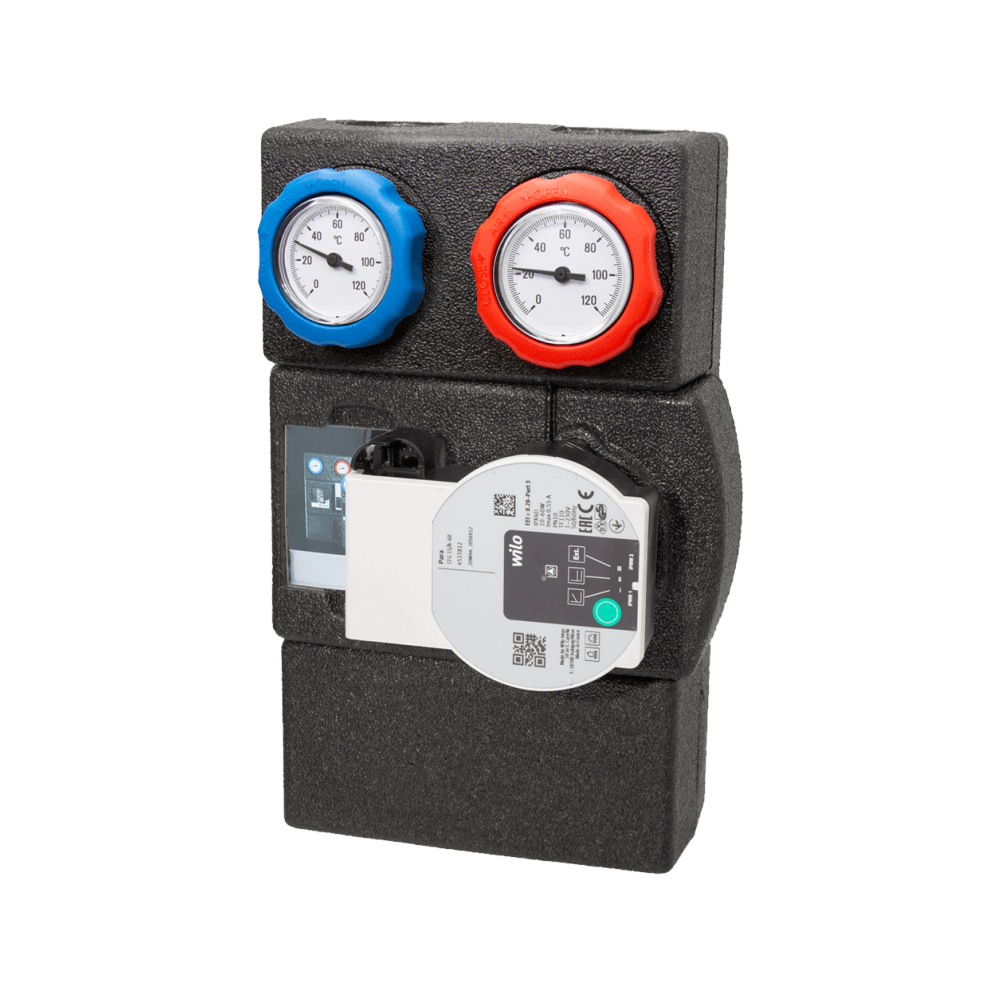 Az egységek két darab, színkóddal ellátott termométerrel felszerelt elzárószeleppel, egy közvetlenül a szivattyú alá szerelt elzárószeleppel, egy, a fűtési körből visszatérő ág alá szerelt visszacsapó szeleppel és szigetelőhéjjal vannak felszerelve.