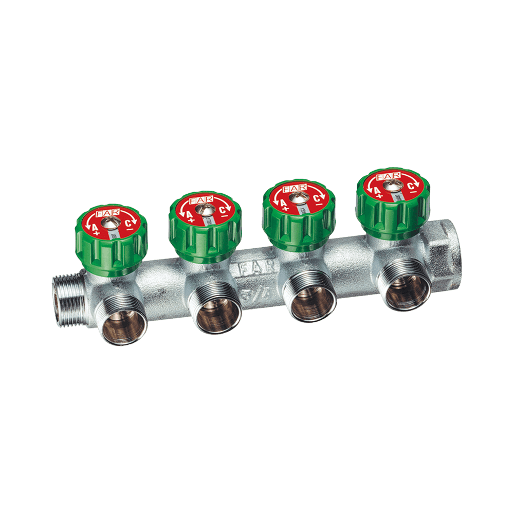 FAR Multifar szelepes osztó, 4 kör, Eurokón., 1”KB4x3/4”